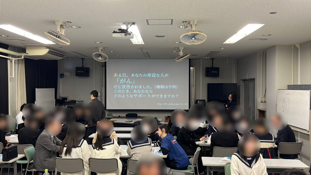 「身近な人ががんになったとき、どのようなサポートができるか」「自分ががんに関する社会保障を考える立場だったら、どのような制度をつくりたいか」という二つの問いをもとに、生徒たちは医学生との対話を通して意見を交わしました。個人の病気として捉えがちながんを、家族や社会全体で考える課題として捉え直す機会となりました。