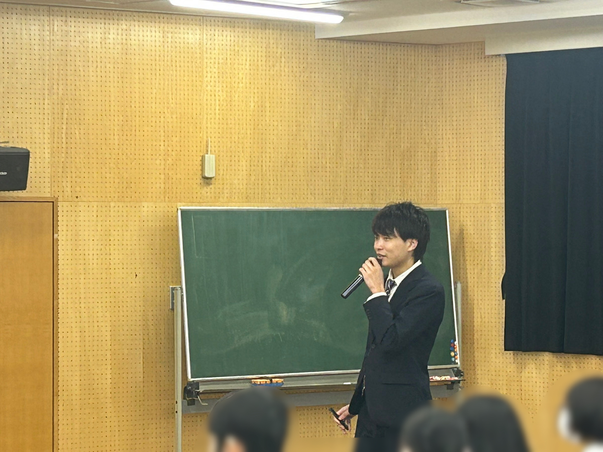 医学生の我孫子さんより、がんの仕組みや現状、原因、予防、早期発見の重要性について講義が行われました。冒頭では、がんの話は身近な人の経験と重なることもあるため、つらくなった場合は無理をしなくてよいことが伝えられ、生徒が安心して授業を受けられるよう配慮がなされました。