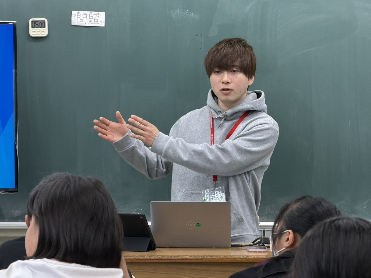 医学生は、がんの基礎知識について、クイズを交えながら児童にも分かりやすい言葉で説明しました。授業の冒頭では、がんという病気について児童が持っているイメージを問いかけながら進められ、がんは特別な人だけがかかる病気ではなく、誰にとっても関わりのある身近な病気であることが丁寧に伝えられました。