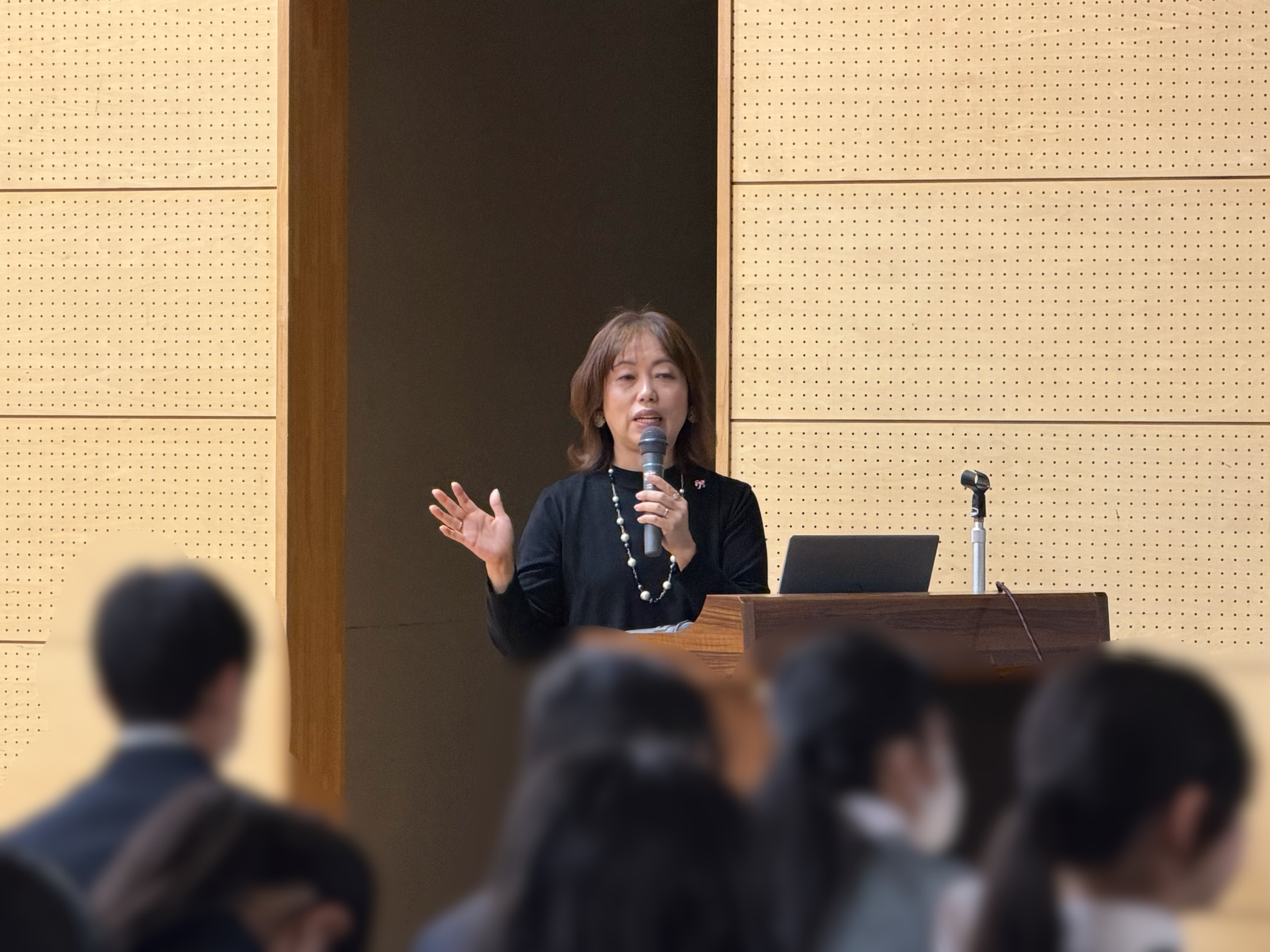 最後に河野さんは、がんは確かに大変な病気だが、早く見つけて治療すれば向き合える病気であること、そして病気にならないためには栄養・休養・睡眠が大切であることを生徒に伝えました。生徒自身だけでなく、家族にも体調や検診について声をかけてほしいというメッセージで講演を締めくくりました。
