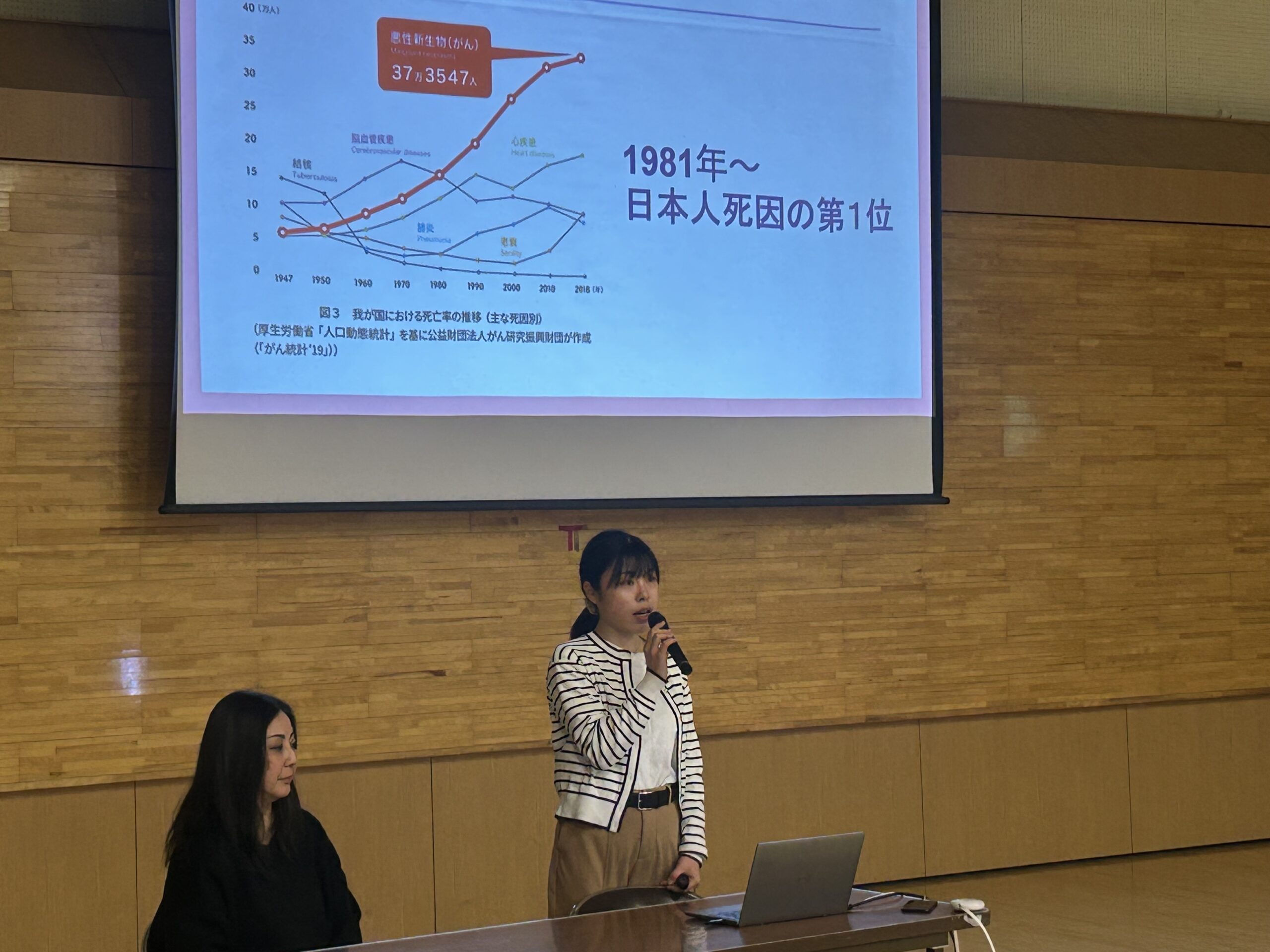 講義を通して、がんは高齢になってからの病気というだけでなく、今の生活習慣や将来の行動とも関わる身近なテーマであることを学ぶ機会となりました。