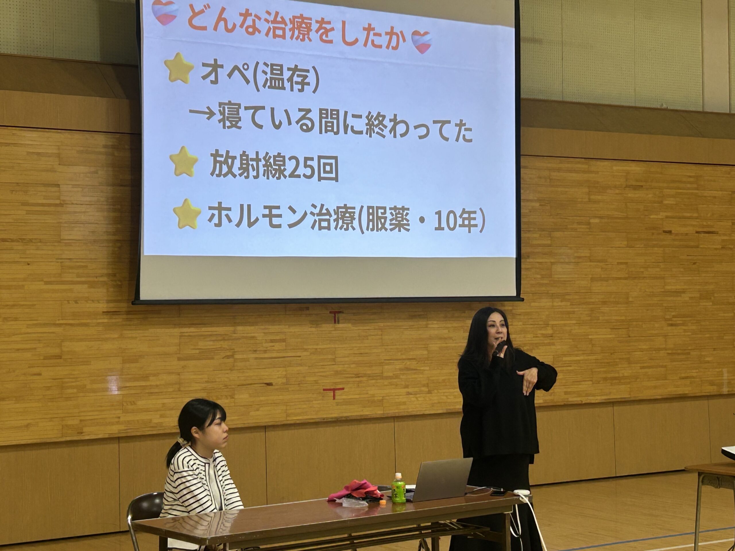 また、手術や放射線治療、ホルモン治療など、実際に受けた治療についても具体的に紹介がありました。さらに、その後の経過観察の中で再発が見つかった経験も共有され、がんは治療後も長く向き合っていく病気であることが伝えられました。
