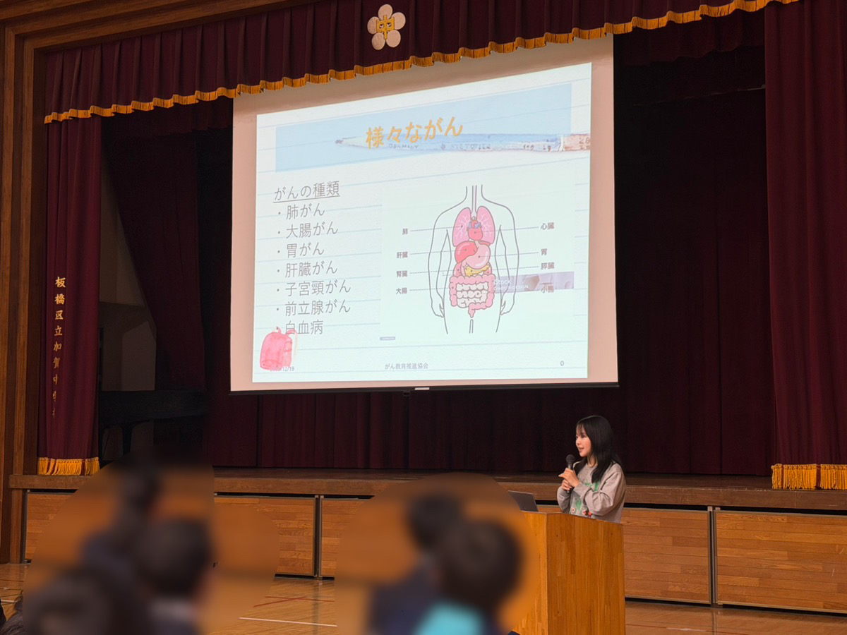 また、日本人の「2人に1人」が一生のうちにがんになることや、死因の中でもがんの割合が非常に高いことが紹介され、がんが決して特別な病気ではなく、誰にとっても身近な病気であることが伝えられました。